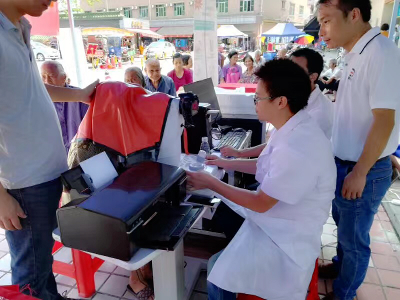 众生药业、中国基药在基层社区卫生服务中心联合开展“关爱眼部健康,眼底疾病免费筛查活动”,并为居民讲解相关的眼底健康知识。